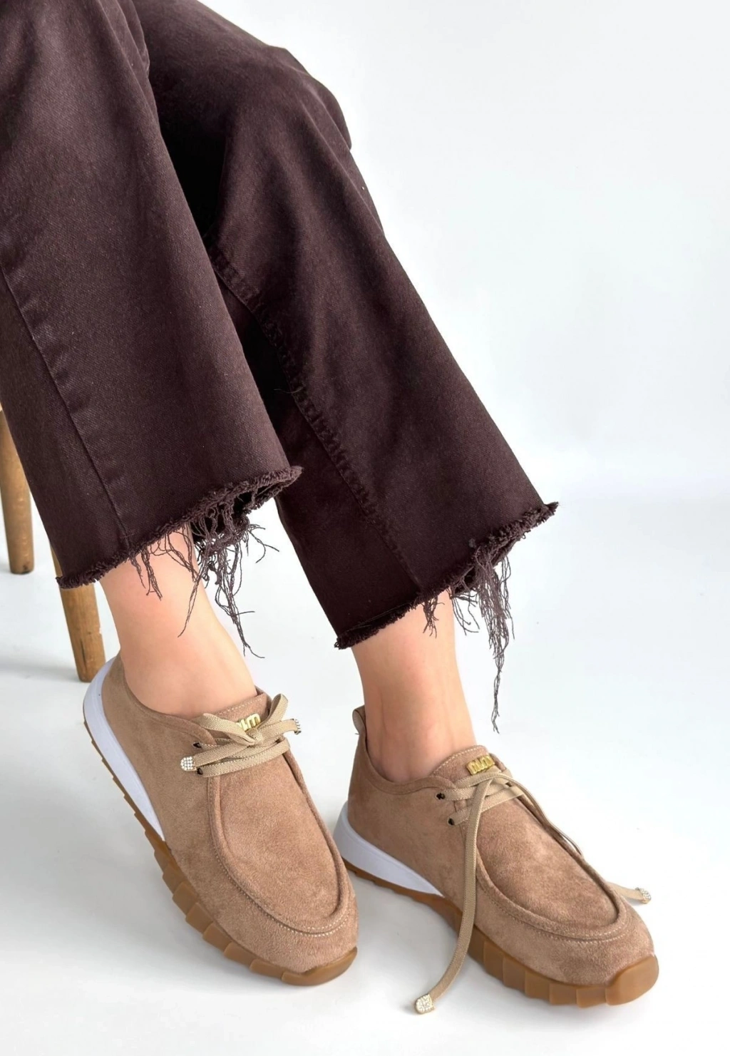 Sier Bej Süet Bağcıklı Spor Ayakkabı