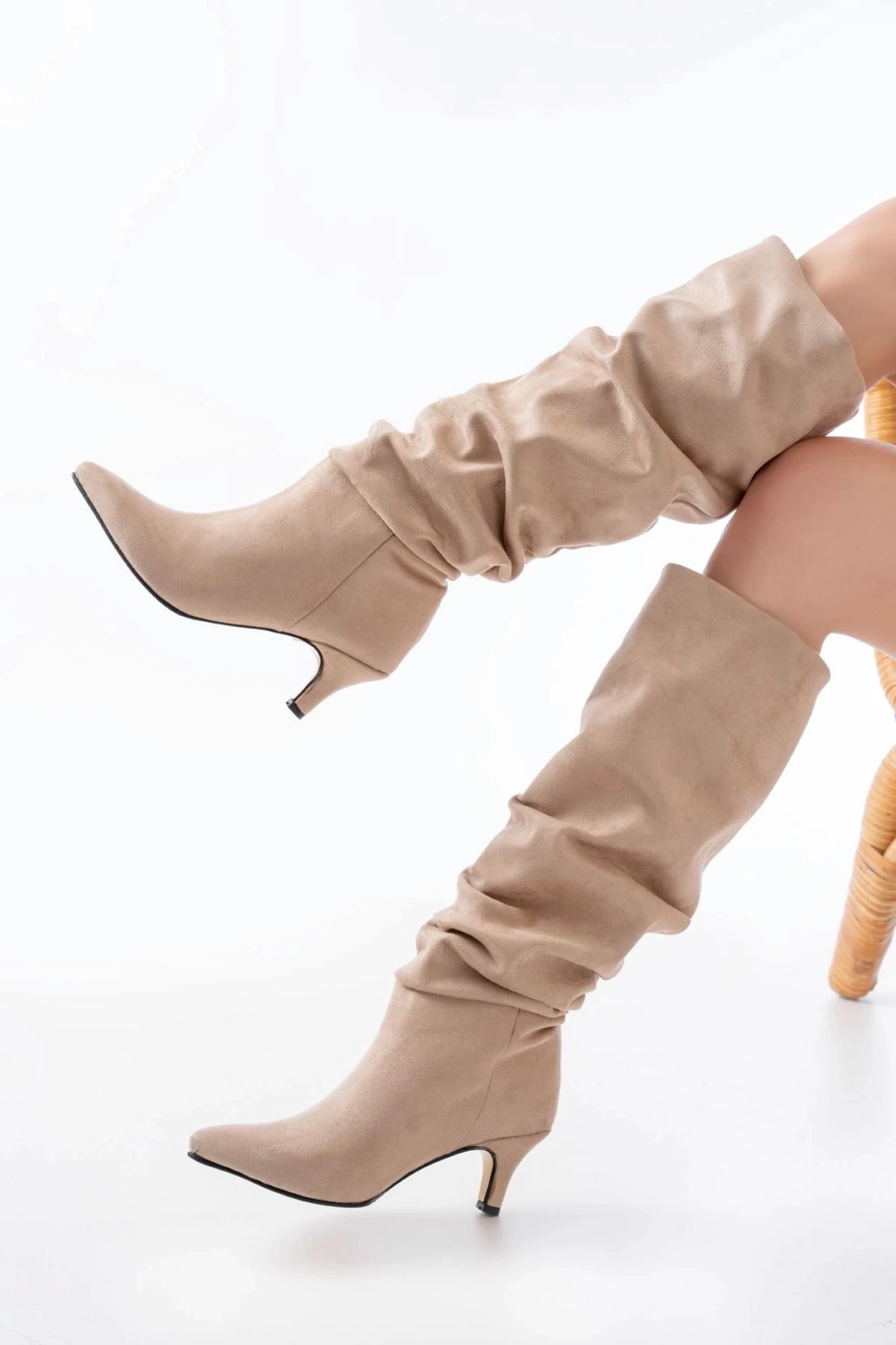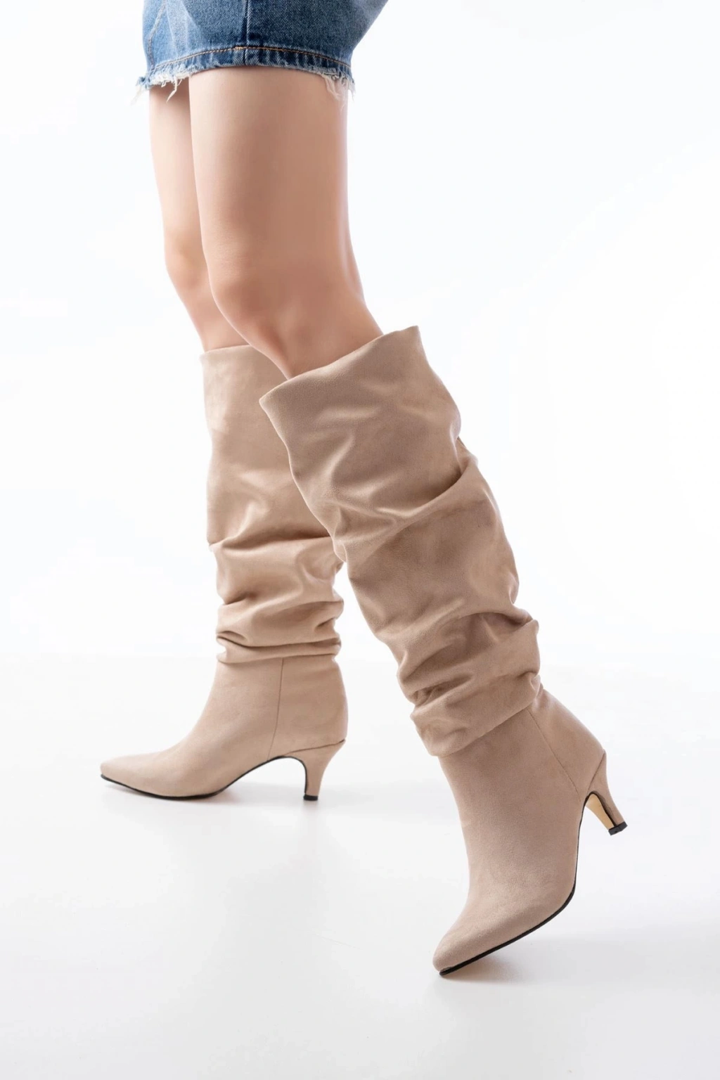 SR-2001 Bej Süet İnce Topuklu Günlük Bayan Çizme