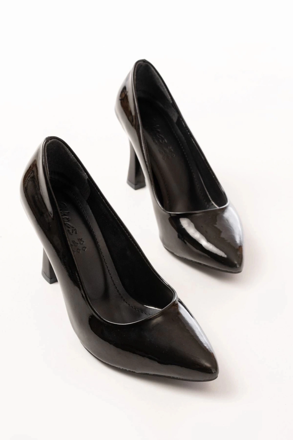 ST-001 Siyah Rugan Günlük 9 cm Topuklu Bayan Stiletto Ayakkabı