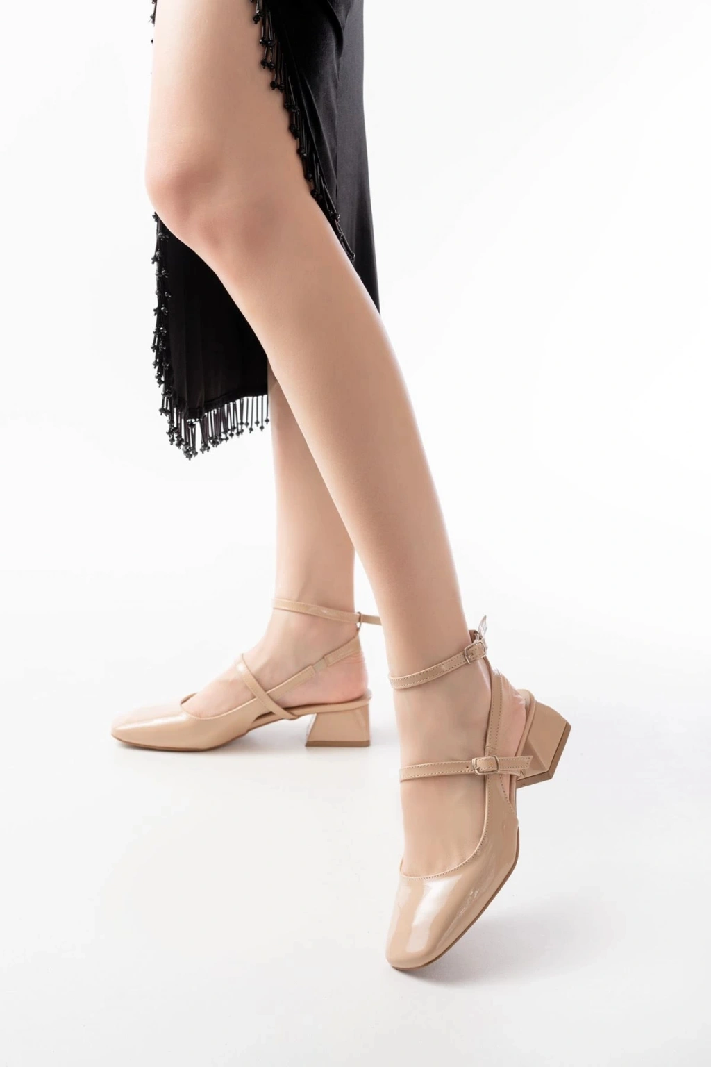 Jonji Nude Cilt Topuklu Kemerli Ayakkabı
