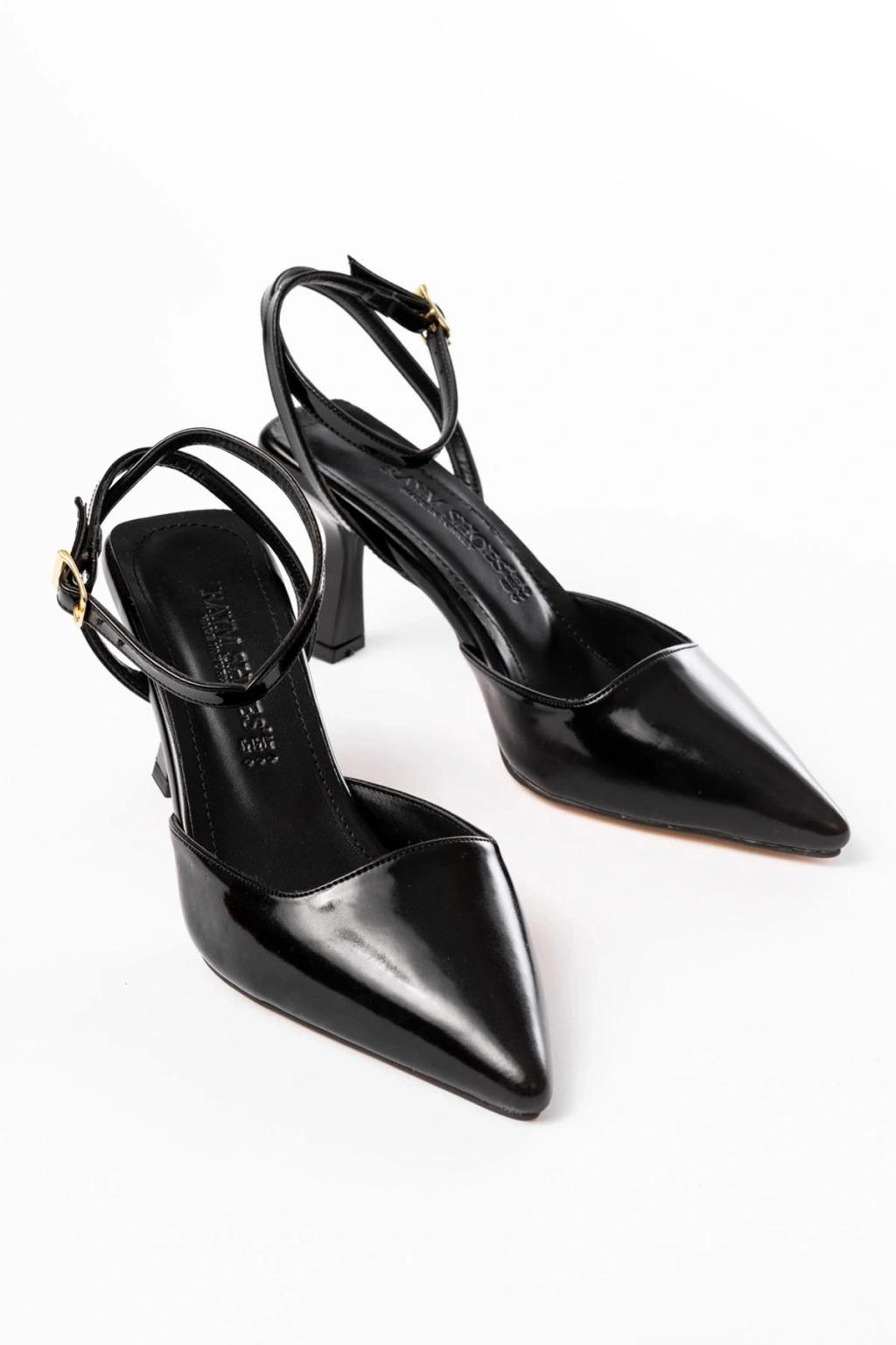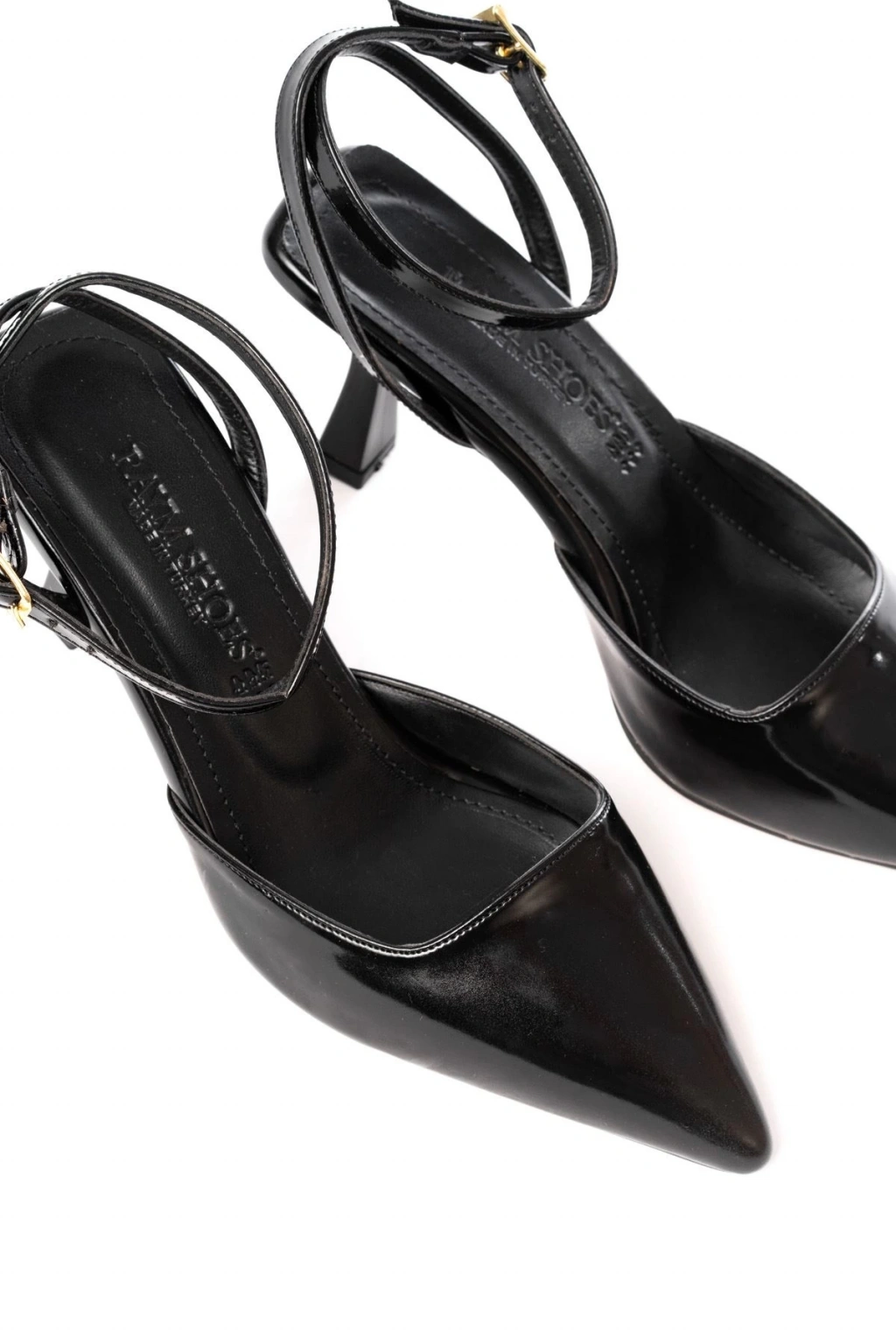 ST-001 Siyah Rugan Günlük 9 cm Topuklu Bayan Stiletto Ayakkabı