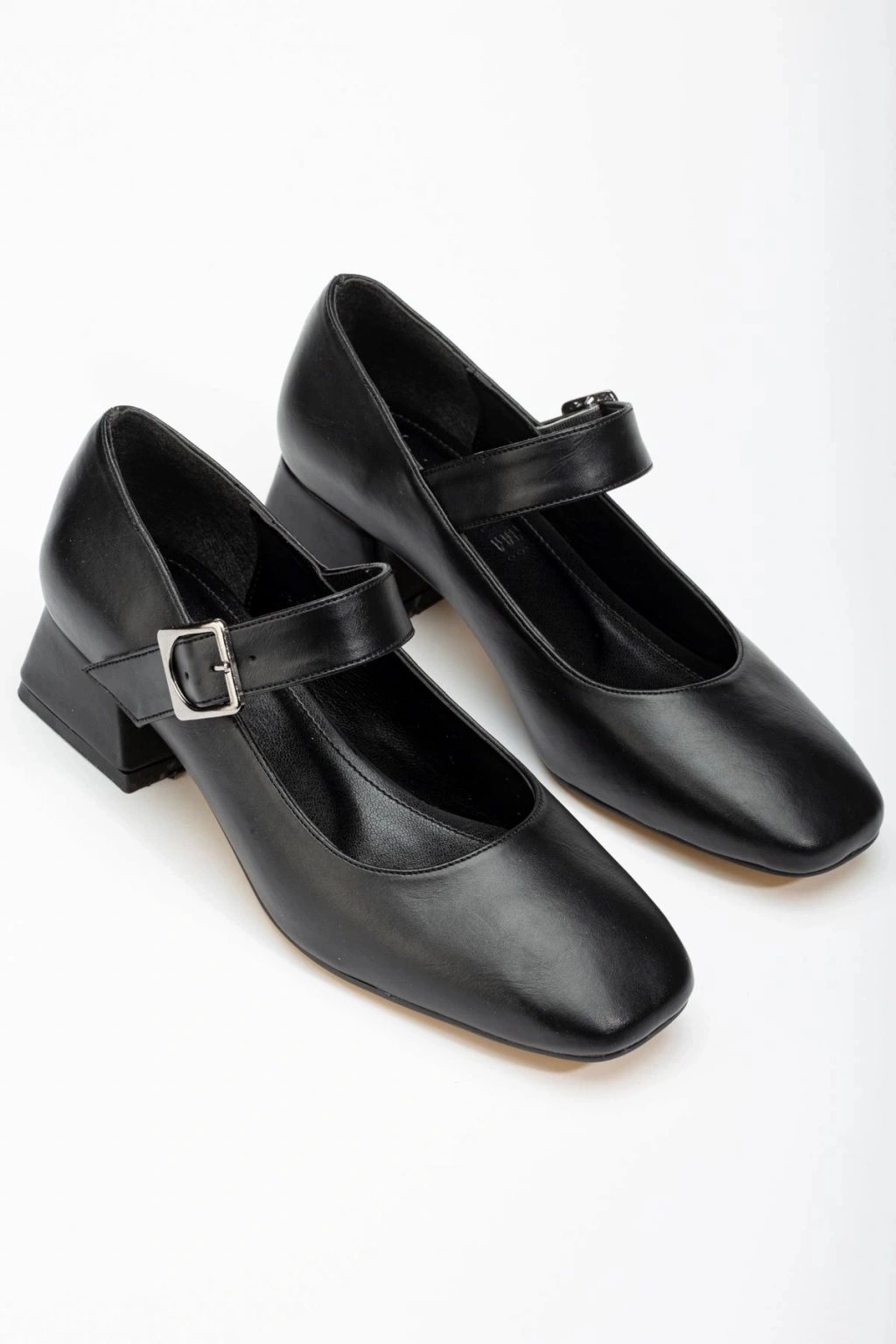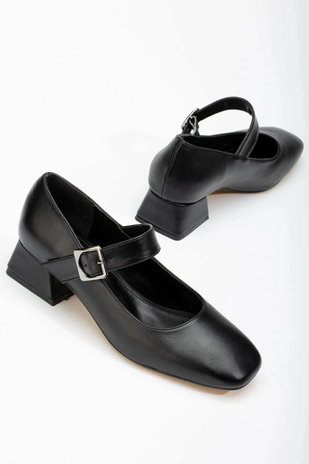 ST-006 Siyah Günlük 4 cm Topuklu Bayan Ayakkabı