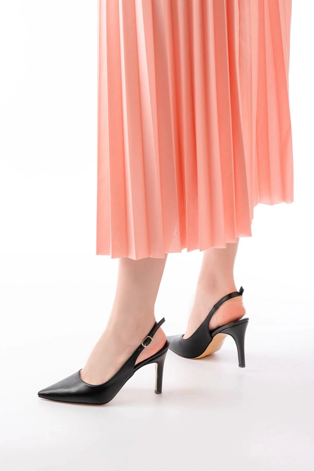 ST-1153 Siyah Günlük Arkası Açık 9 cm Topuklu Kadın Ayakkabı