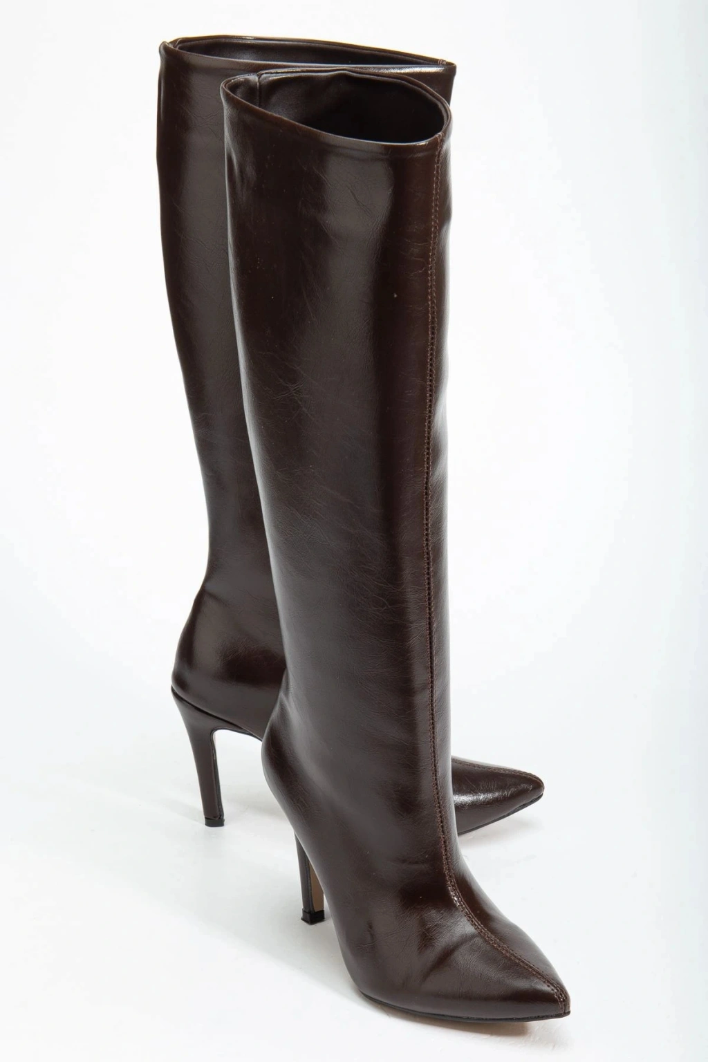 SYT-2004 Kahve Kırışık Rugan Günlük Bayan Çizme