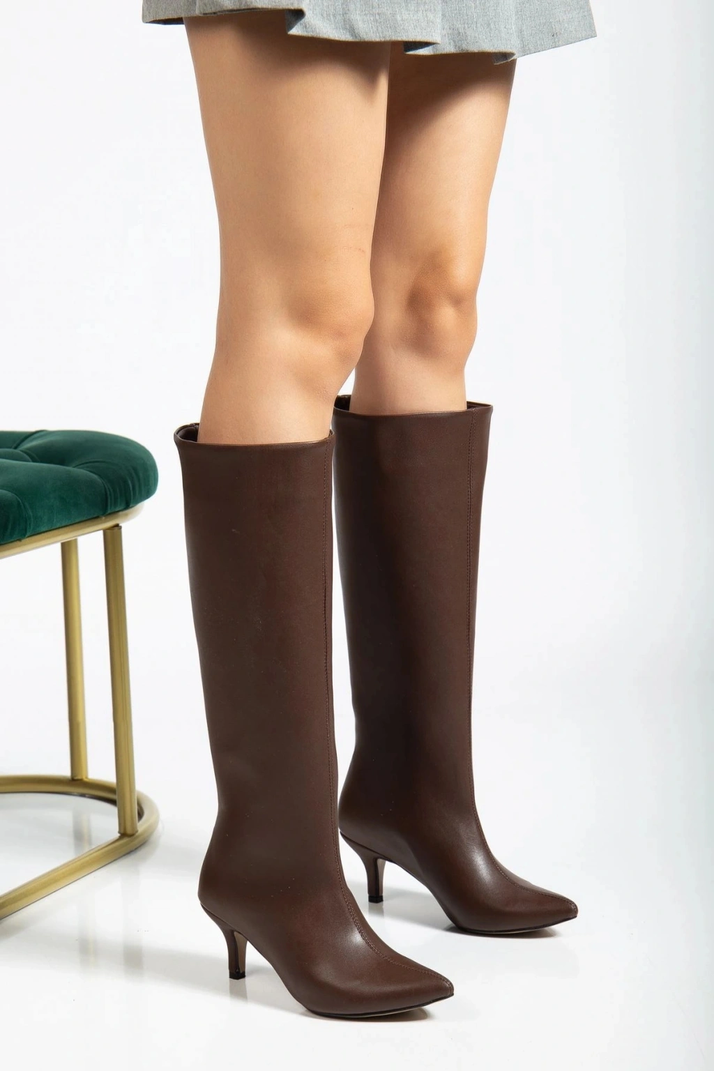 SR-2001 Gri Süet İnce Topuklu Günlük Bayan Çizme