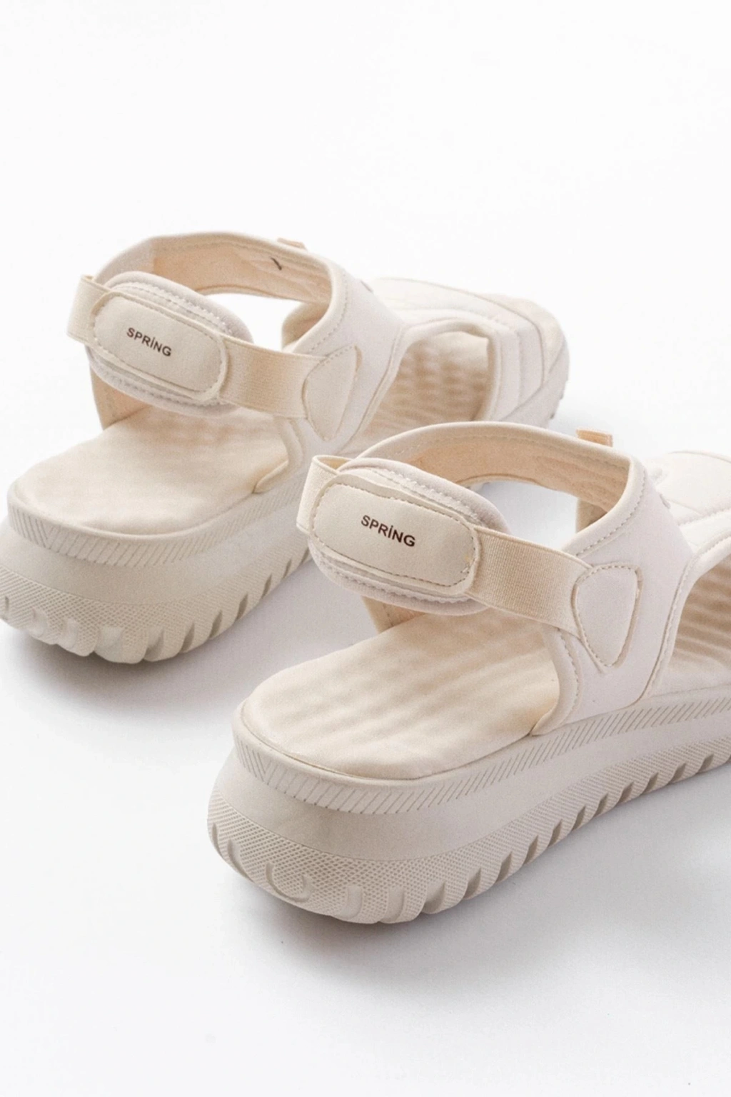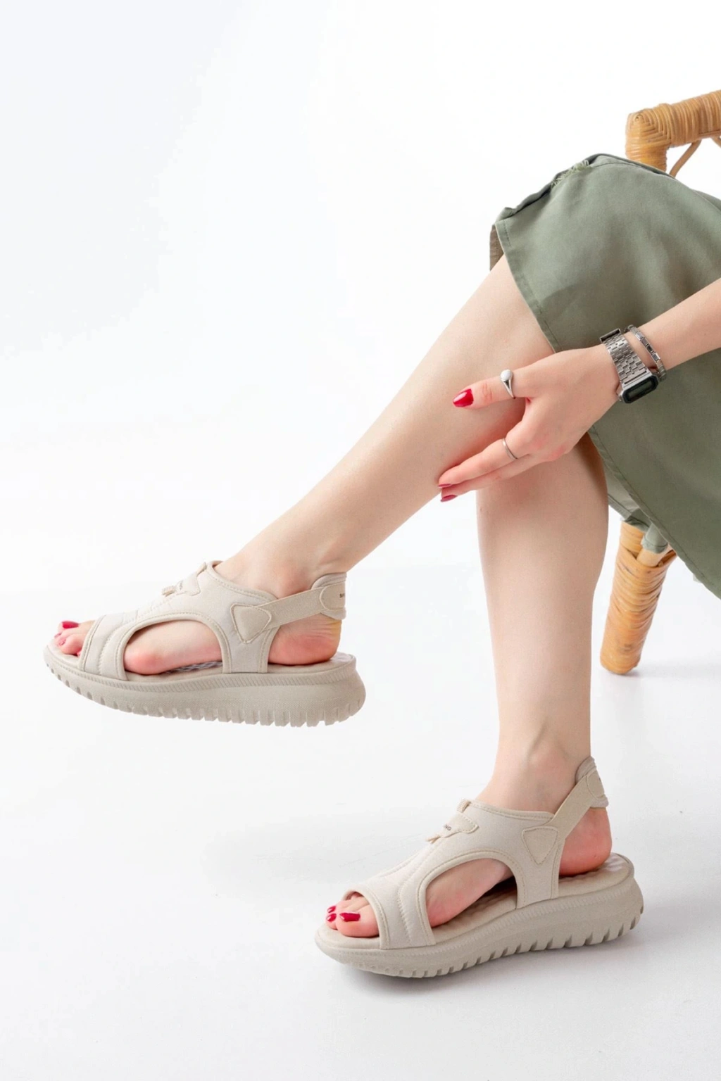 T-221 Bej Spring Paraşüt Kumaş Lastikli Ortopedik Kadın Sandalet