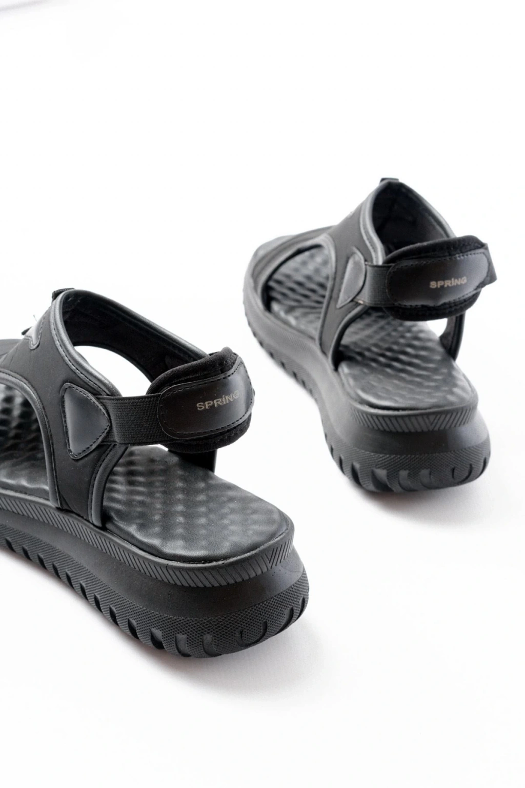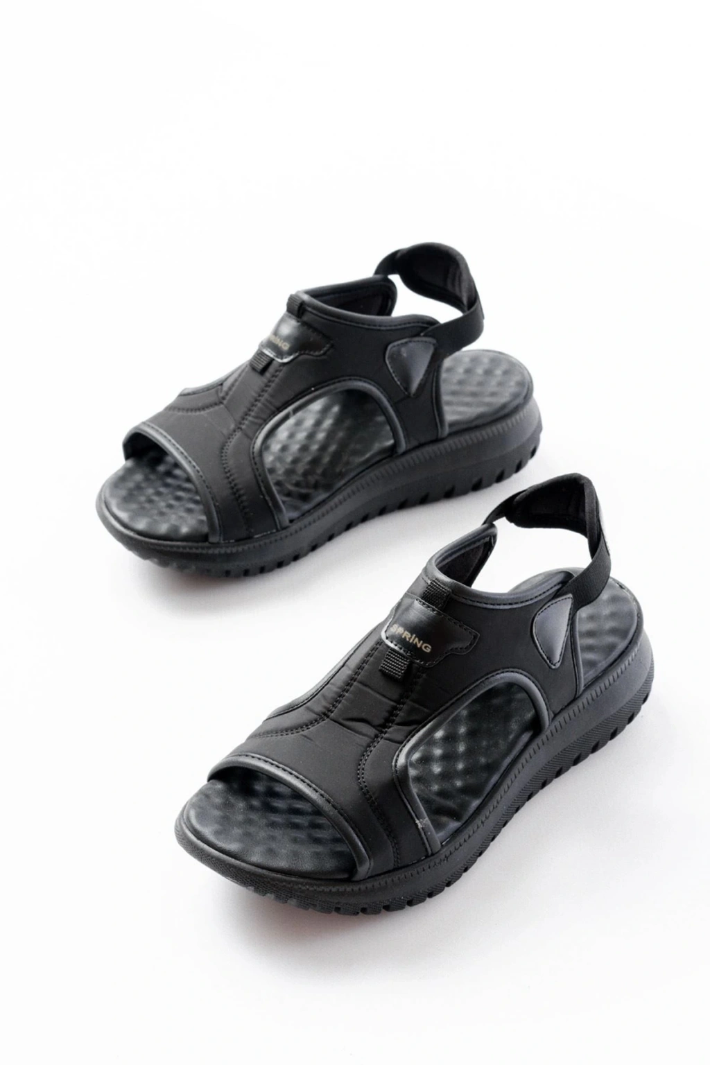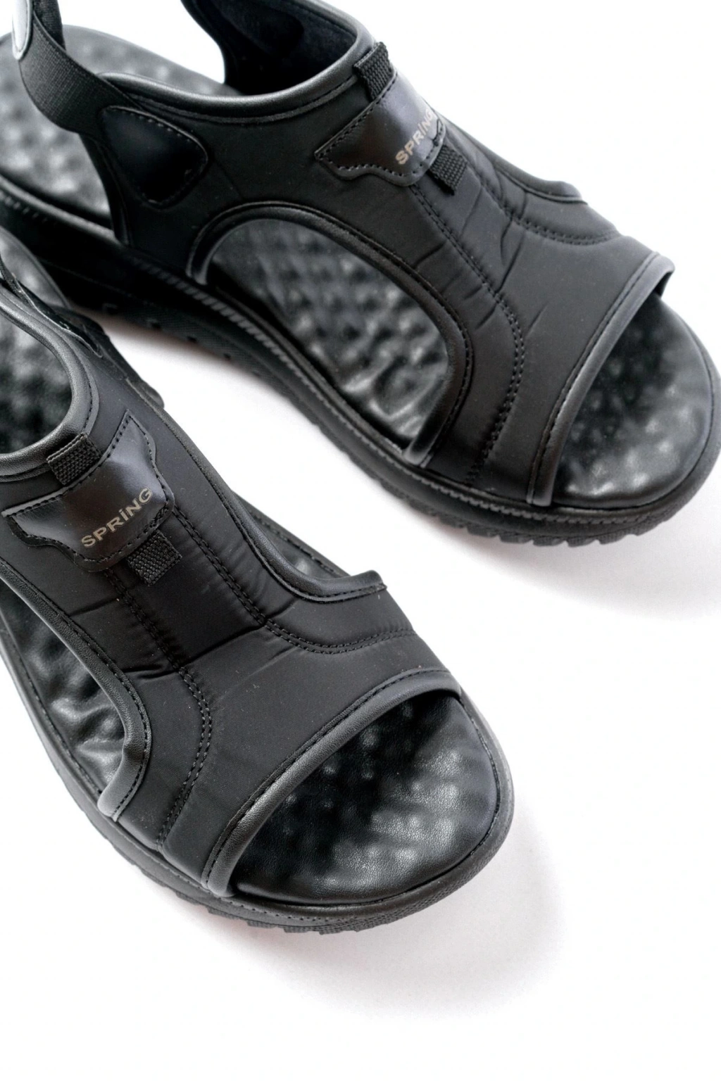 T-221 Siyah Spring Paraşüt Kumaş Lastikli Ortopedik Kadın Sandalet