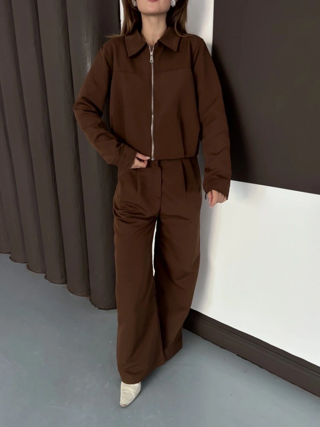 Şık ve şıklığından ödün vermeyen kadınlar için tasarlanmış Kahve Ons Trenç Takım, şıklık ve rahatlığı bir arada sunuyor. İster günlük şıklığınızda ister özel davetlerde tercih edebileceğiniz bu takım ile her ortamda farkınızı ortaya koyabilirsiniz.