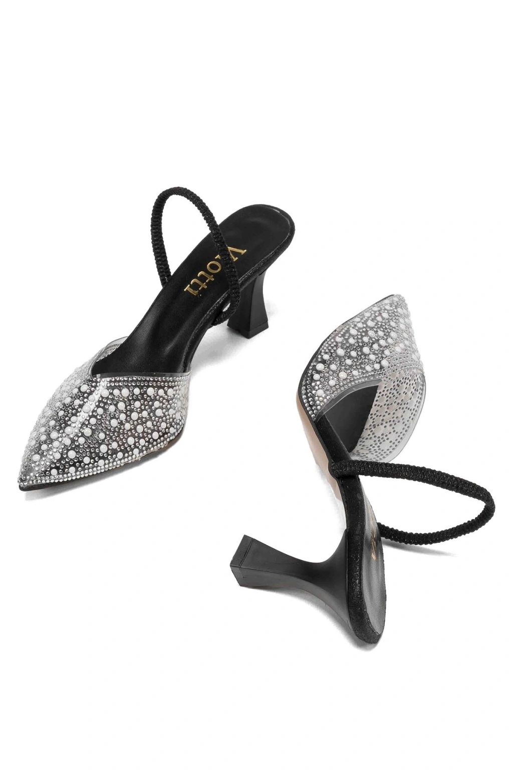 V-1005 Siyah Günlük Arkası Açık Taşlı Topuklu Bayan Ayakkabı