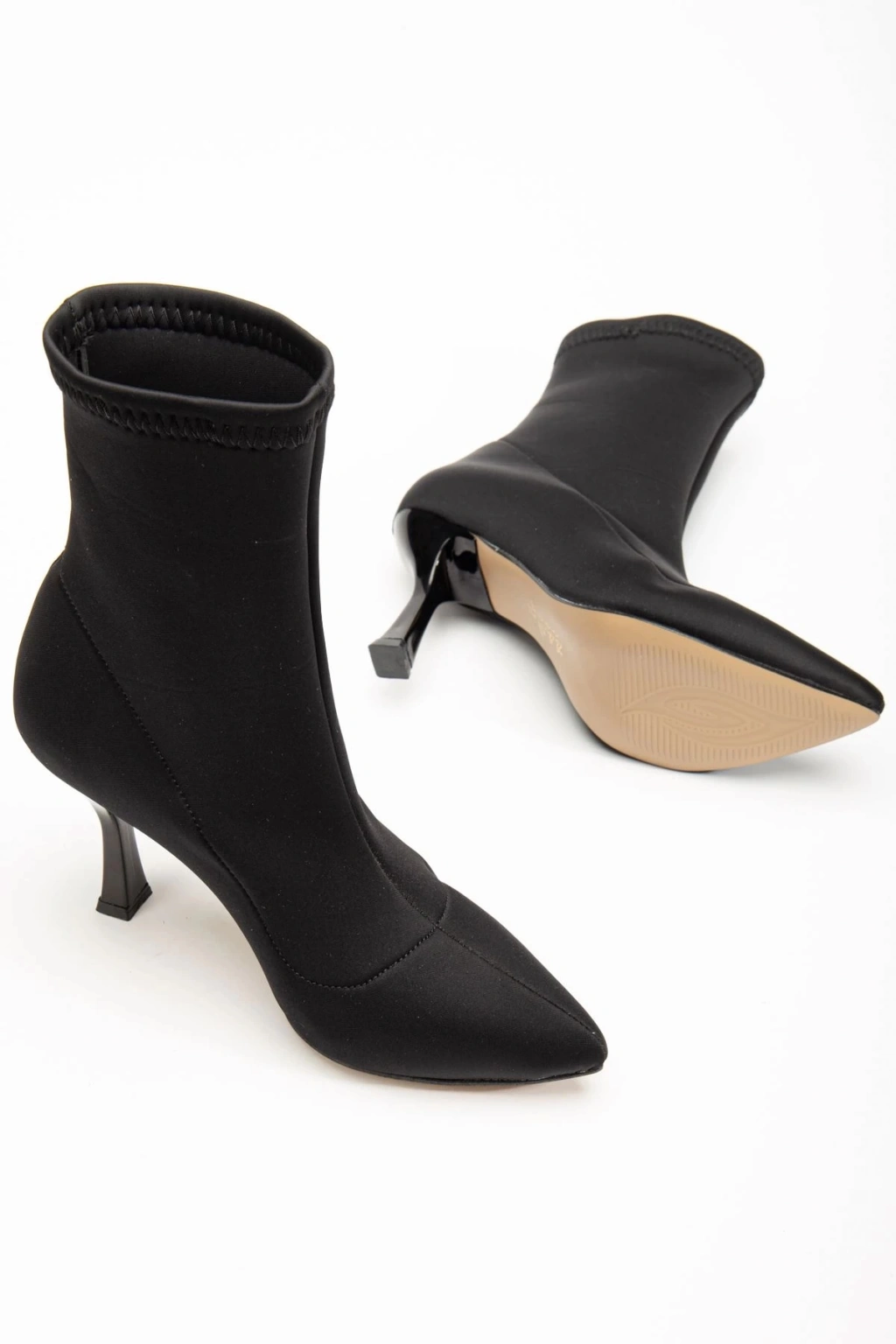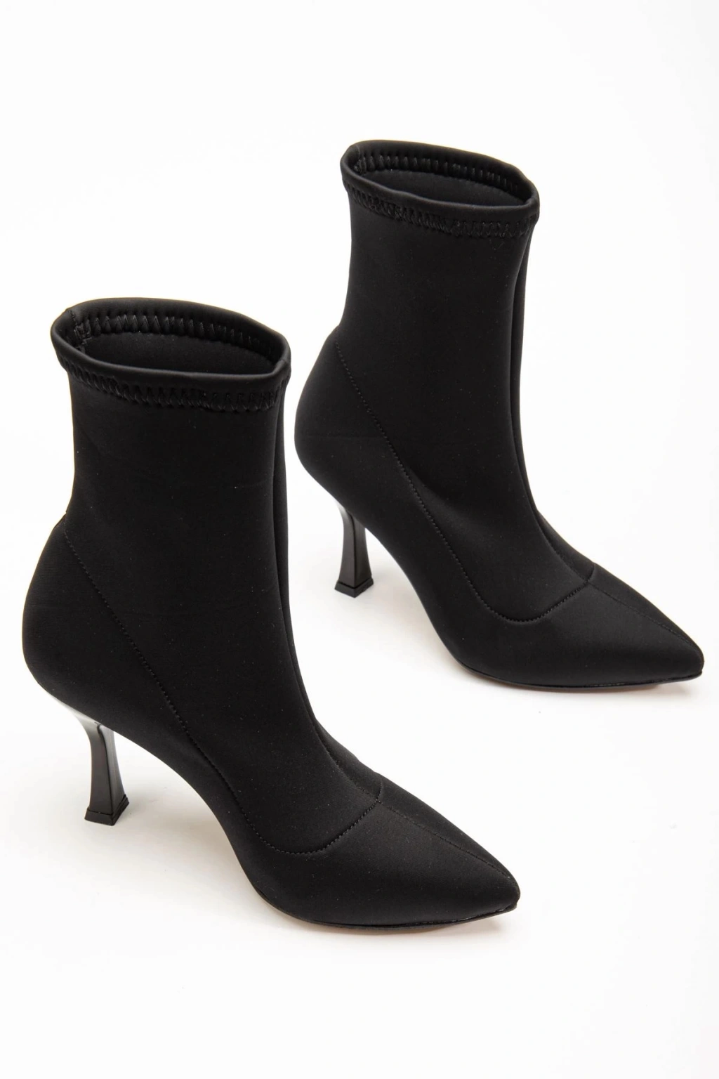 VRT-023 Siyah Dalgıç Yüksek İnce Topuklu Streç Kadın Bot
