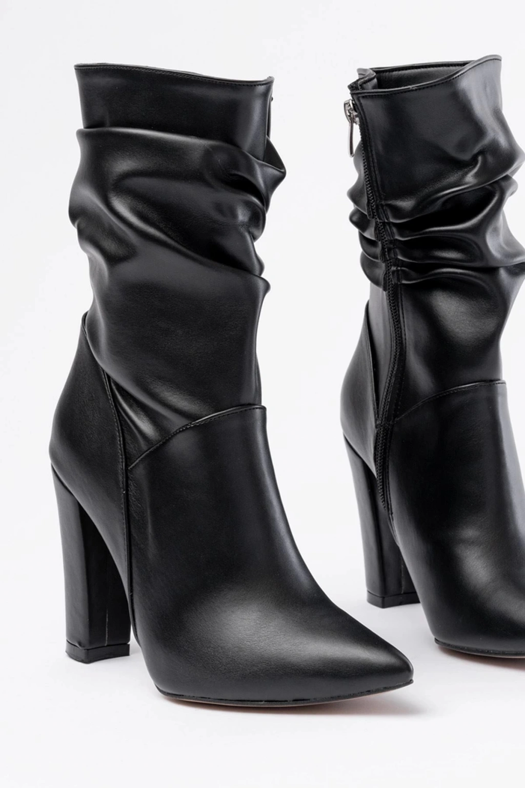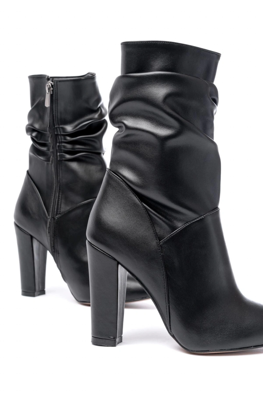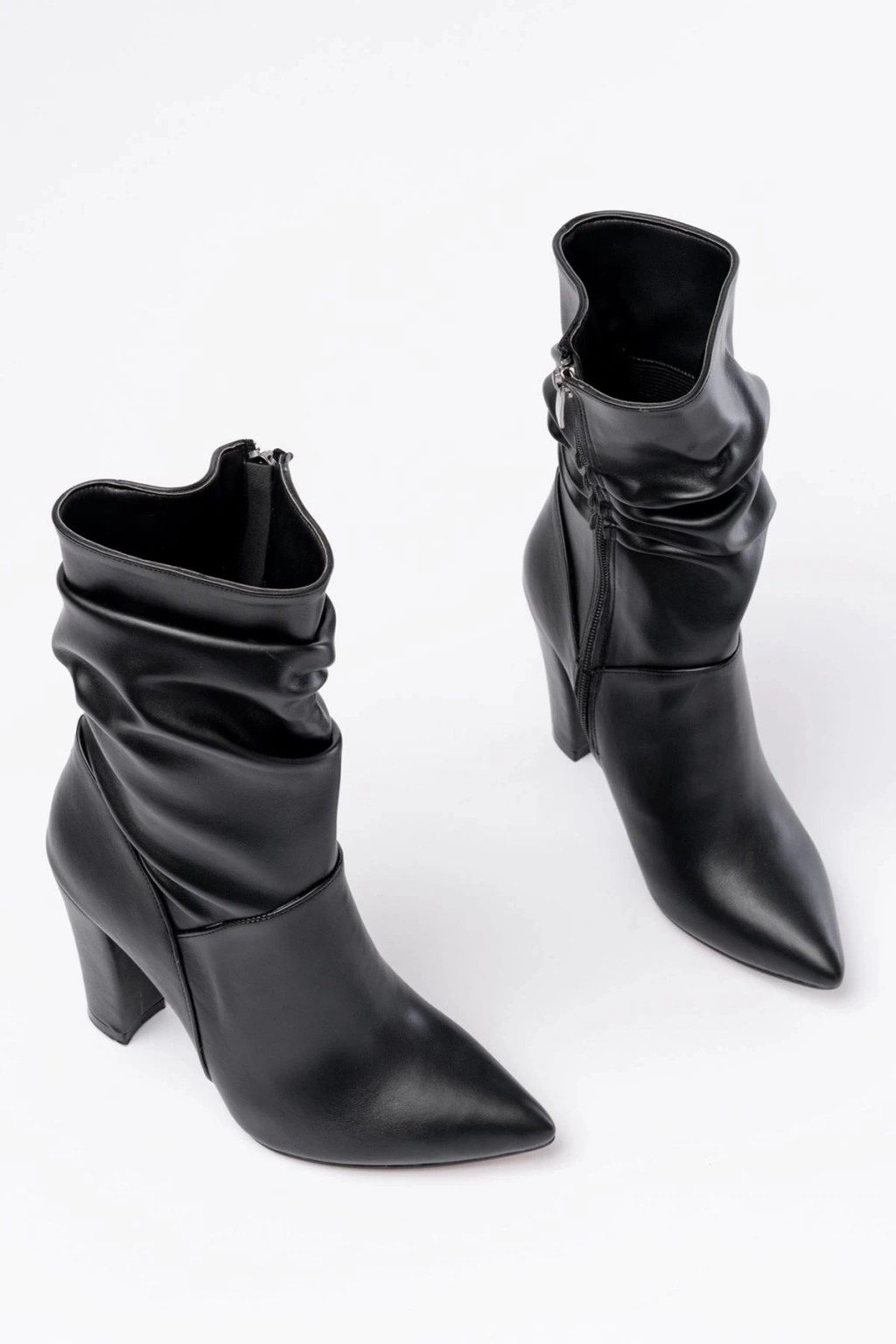 VRT-4815 Siyah Yüksek Kalın Topuklu Körüklü Fermuarlı Kadın Bot