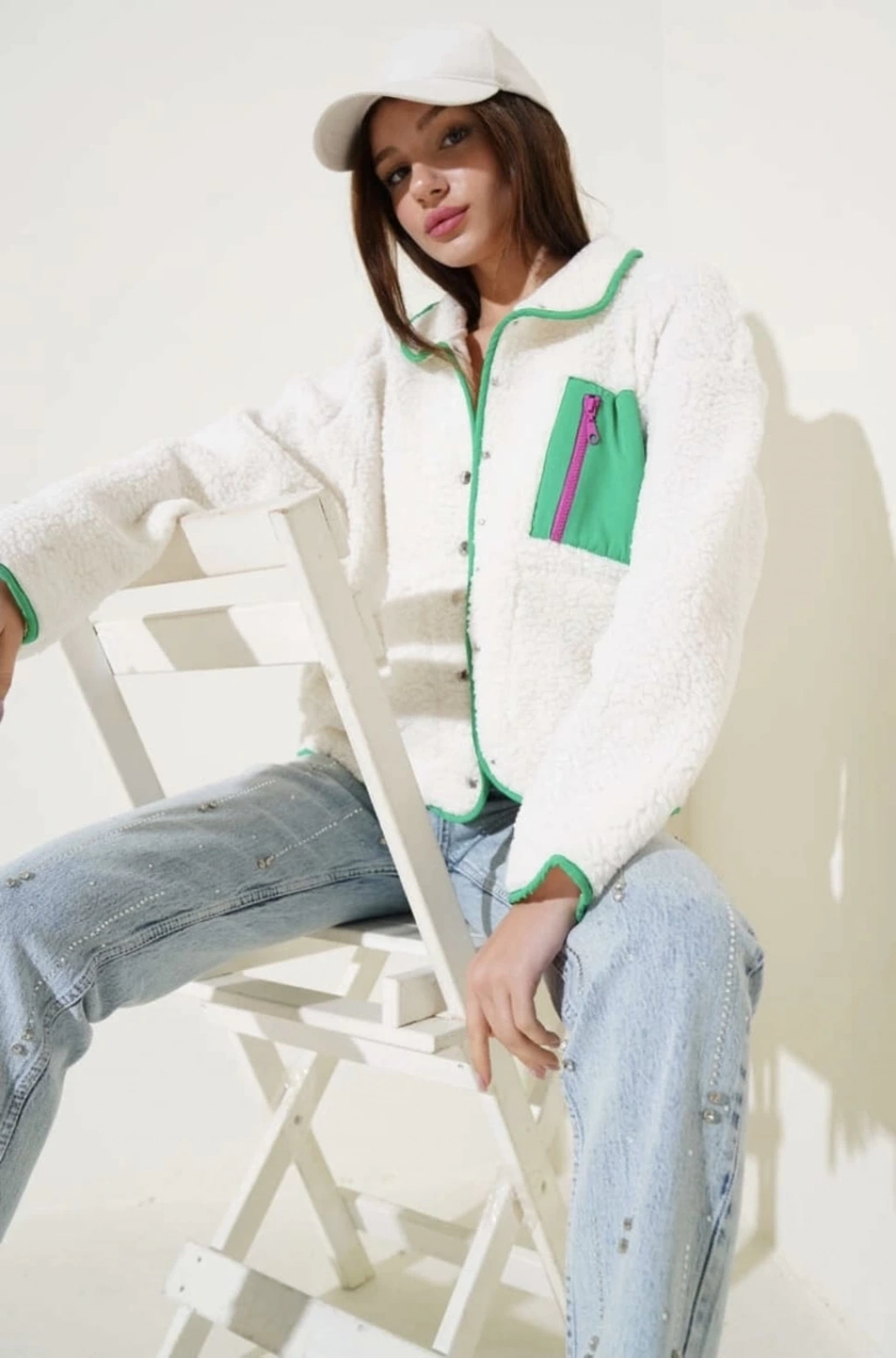 Kadın Giyim kategorisindeki en şık seçeneklerden biri olan Yeşil Fermuar Cepli Kuzu Mont, şıklığı ve rahatlığı bir arada sunuyor.